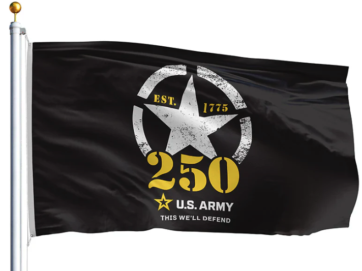 Licensed and official 250th Anniversary Army military flag. This is certified American made with high quality 200 denier DuPont Nylon. Printing is done using our proprietary deep-penetrating acid dye inks for vibrant, long-lasting color. Flags are hemmed and finished with heading and 2 brass grommets. Manufacturer is certified by the Flag Manufacturer’s Association of America (FMAA) which certifies our flags have been made in the U.S. of materials that are domestic in origin and that all processes in every step of its manufacture were completed in the U.S. facilities with U.S. labor.