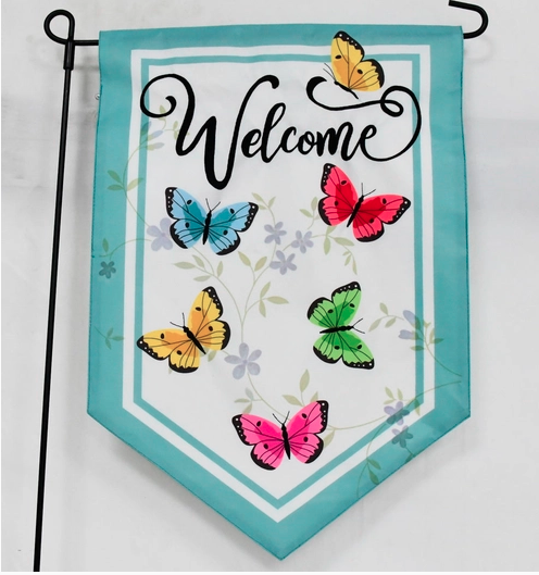 Butterfly Welcome Flag - Embroidered Polyester - double-sided - 12.5 x 18 in