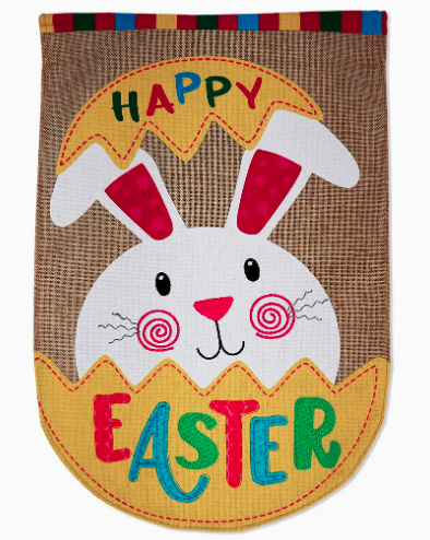 Happy Easter Bunny Flag - burlap applique double-sided - 13 x 18.5 in