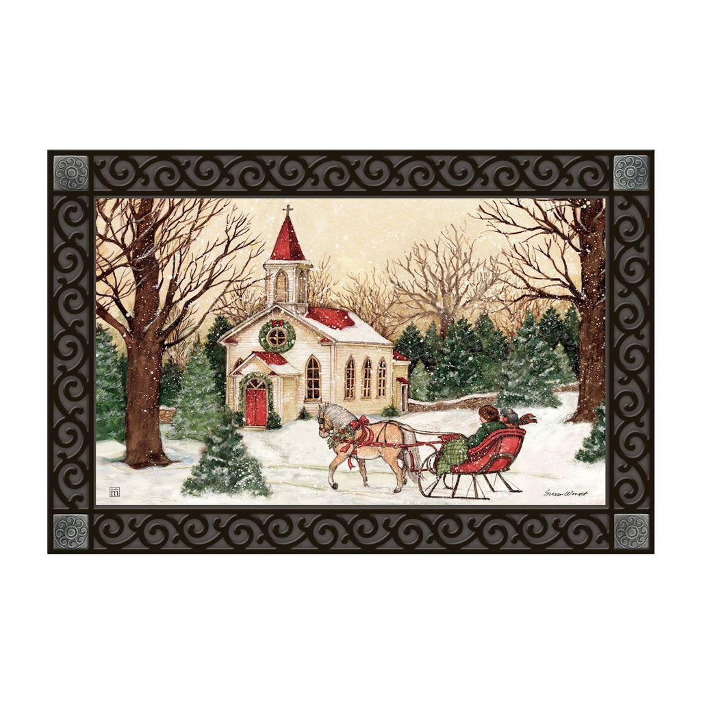 MatMates® can be used stand-alone or as interchangeable inserts in MatMates™ Outdoor Doormat Trays. Beautiful winter scene with church in the background.