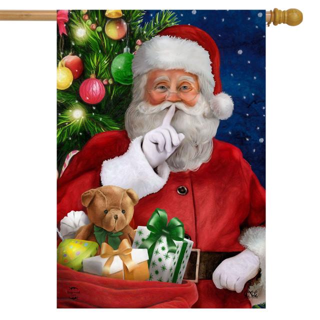Christmas Santa design on durable polyester fabric. Display the 28x40" size on one of our 5 foot spinning poles.