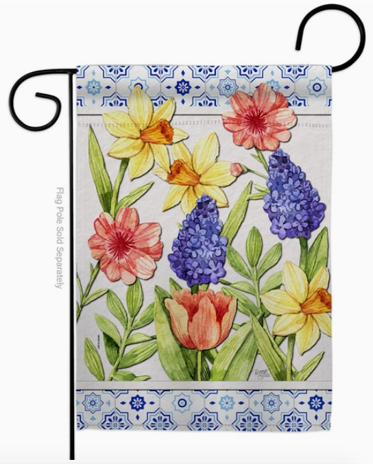 Celebrate the beauty of spring with this lovely design printed on thick, weather resistant polyester fabric. Display this 13 x 18.5 flag on one of our garden posts. Double-sided.