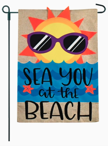 Celebrate summer with this embroidered burlap flag. Display the 12.5x18" size on one of our garden posts. Readable from both sides.